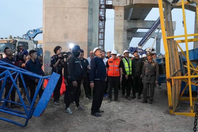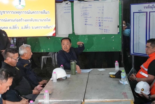ต่อมาเวลา 17.50 น. นายอนุทิน ชาญวีรกูล นายกรัฐมนตรีและ รมว.มหาดไทย พร้อมด้วยนายพิพัฒน์ รัชกิจประการ รมว.คมนาคม เดินทางไปยังสถานที่เกิดเหตุ เพื่อสอบถามสาเหตุของเครนถล่มจากวิศวกรผู้ควบคุมงาน และผู้เกี่ยวข้อง โดยมีนายอนุพงศ์ สุขสมนิตย์ ผวจ.นครราชสีมา และ พล.ต.ต.ณรงค์ศักดิ์ พรหมทา ผบก.ภ.นครราชสีมา และตัวแทนบริษัทอิตาเลี่ยนไทย ซึ่งเป็นผู้รับจ้างก่อสร้างทางรถไฟความเร็วสูงโครงการดังกล่าวให้การต้อนรับ