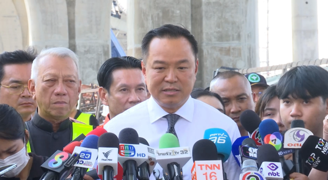 เมื่อถามว่าได้มีการชี้แจงสาเหตุเบื้องต้นหรือไม่ นายอนุทิน กล่าวว่า สาเหตุเบื้องต้นอย่างที่ตนบอกไปขณะนี้เรายังเข้าไปในจุดเกิดเหตุไม่ได้เพราะมีซากปรักหักพังเต็มไปหมด สิ่งที่ต้องทำคือต้องถอดชิ้นส่วนต่างๆ ไปทำการตรวจสอบ แต่แน่นอนว่าสาเหตุมาจากตัวทรัคเครน หรือ เครนลอนเชอร์ เพราะล้มและทรุดตัวตรงนั้น ไม่ใช่ตัวโครงสร้างที่เป็นโครงสร้างคอนกรีต อันนั้นไม่ใช่
