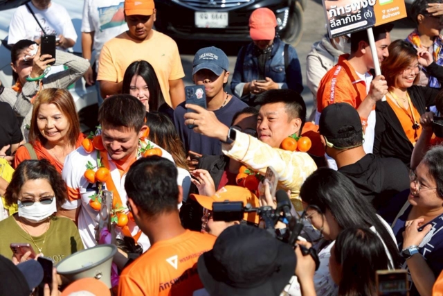 วันที่ 18 ม.ค.2569 นายณัฐพงษ์ เรืองปัญญาวุฒิ แคนดิเดตนายกรัฐมนตรีของพรรคประชาชน ลงพื้นที่จังหวัดเชียงใหม่หาเสียงเลือกตั้ง ที่ตลาดสดเทศบาลตำบลหางดง เพื่อช่วยหาเสียงให้กับ “ตี๋ ภัทรพงษ์” ผู้สมัครของพรรคประชาชน ท่ามกลางบรรยากาศคึกคักจากพ่อค้าแม่ค้าและพี่น้องประชาชนมารอมอบส้มและดอกไม้ให้