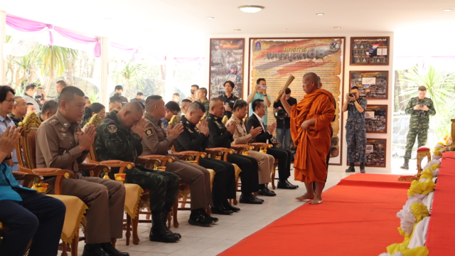 ซึ่งในพิธีได้นิมนต์พระครูศรีรัตน์สรกิจ (สมบูรณ์ รตินฺธโร) เจ้าคณะอำเภอเขาฉกรรณ์ เจ้าอาวาสวัดสระแก้วพระอารามหลวง พร้อมพระสงฆ์ จำนวน 10 รูป สวดพระพุทธมนต์ และคณะผู้ร่วมพิธี ได้ถวายสังฆทาน เพื่ออุทิศส่วนกุศลให้แก่ทหารกล้าทั้ง 10 นาย ที่สละชีพเพื่อปกป้องผืนแผ่นดินไทย ในสมรภูมิ พื้นที่ บ.คลองแผลง อ.ตาพระยา, บ.หนองหญ้าแก้ว และ บ.หนองจาน อ.โคกสูง จ.สระแก้ว สำหรับรายนามวีรชนทหารกล้าหาญจากสมรภูมิรบชายแดนไทย – กัมพูชา ในพื้นที่ จ.สระแก้ว ทั้ง 10 นาย ดังนี้