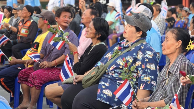 วันที่ 19 ม.ค.2569 บรรยากาศเวทีปราศรัยใหญ่ภาคกลางพรรคประชาธิปัตย์ เวทีที่ 2 จังหวัดสมุทรสาคร จัดขึ้นที่บริเวณลานด้านหน้าศาลเจ้าพ่อหลักเมือง โดยก่อนที่เวทีปราศรัยจะเริ่มขึ้น ประชาชนทะยอยเดินทางมารอรับฟังการปราศรัยตั้งแต่เวลา 16.30 น. โดยส่วนใหญ่บรรดากองเชียร์ สวมเสื้อสีฟ้า พร้อมป้ายเชียร์ ดอกกุหลาบ และถือธงชาติไทย