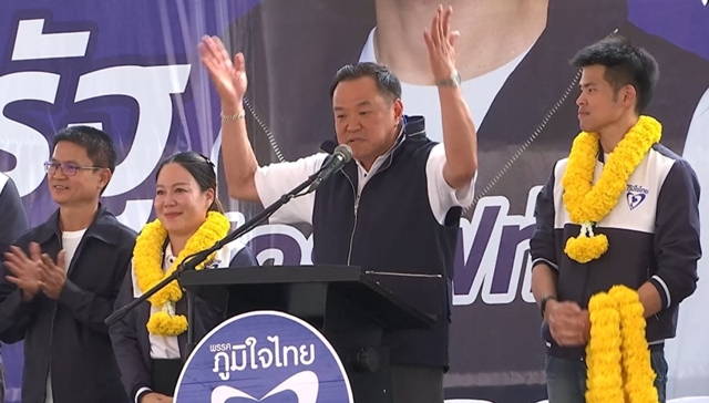 วันที่ 22 ม.ค. 69 ที่อ.คง จ.นครราชสีมา นาย อนุทิน ชาญวีรกูล นายกรัฐมนตรี ในฐานะหัวหน้าพรรคภูมิใจไทย ขึ้นเวทีปราศรัยช่วย นายตติรัฐ รัตนเศรษฐ ผู้สมัคร สส.เขต 16 นครราชสีมา หาเสียง