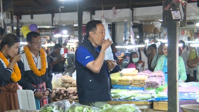 นายอนุทิน ได้เดินทักทายพ่อค้าแม่ค้าในตลาด ชิมมะขามหวาน ข้าวจี่ ลูกกระบก และอุดหนุนซื้อ เดินถือถุงรับประทานไปตลอดทาง บอกว่าอร่อยมาก เพิ่งเคยรับประทานครั้งแรก