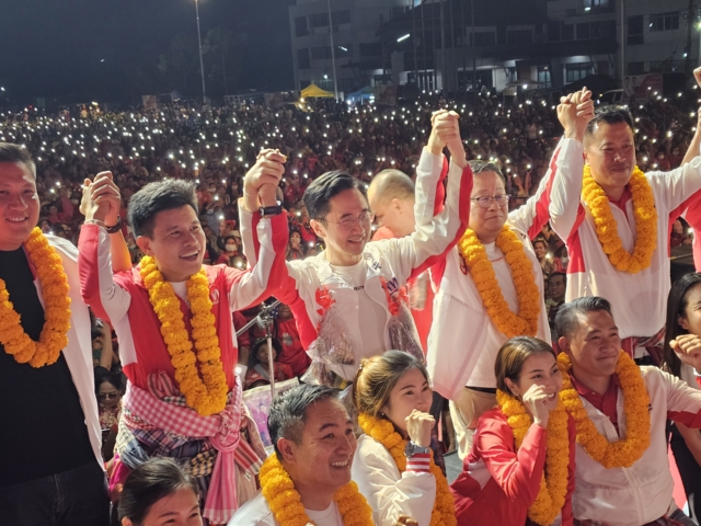 ทั้งนี้ขอนแก่น มีหลากหลายมหาวิทยาลัย และตนจะทำให้เป็นมหาวิทยาลัยชั้นนำของโลกให้ได้ และตนจะสนับสนุนให้มหาวิทยาลัยขอนแก่นเข้าท็อป 100 ของโลกให้ได้ ซึ่งการจะทำต้องการเสถียรภาพทางการเมือง และครั้งนี้เป็นอีกหนึ่งในการต่อสู้ที่ทำให้ประเทศไทยหลุดพ้นจากกับดักและความยากจน ทั้งนี้ไม่ว่าเราจะมีเงินแค่ไหนแต่หากไม่มีคุณภาพชีวิตที่ดีก็ไม่มีประโยชน์ ดังนั้นต้องแก้หนี้ทั้งระบบ ทั้งหนี้เกษตรกร หนี้เสีย หนี้ผู้สูงอายุ ส่วนหนี้ครู และข้าราชการ มีการตั้งคณะกรรมการไว้หมดแล้ว เราจะดูแลอย่างเท่าเทียมไม่ต้องหวาดผวาในตอนกลางคืน รวมถึงหนี้นอกระบบอีกด้วย นอกจากนี้ ยังเน้นย้ำนโยบายทำสงครามในการกำจัดยาเสพติดทั้ง 4 ปี ไม่ให้กลับมาผุดมาเกิดได้อีก ทั้งนี้ตนขอคนขอนแก่นให้เลือกพรรคเพื่อไทย ทั้ง 11 เขต