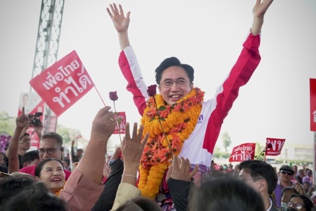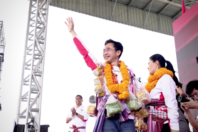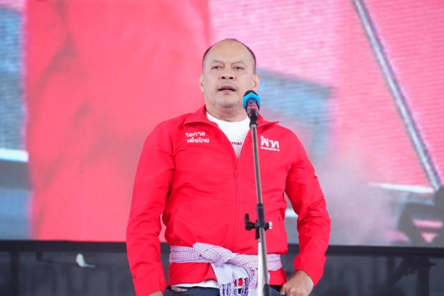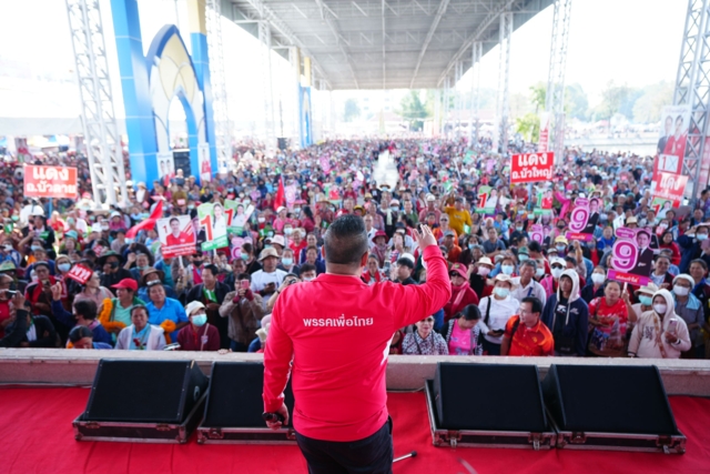 โคราชมีทั้งหมด 16 เขต คราวที่แล้วพรรคเพื่อไทยได้รับความไว้วางใจจากคนโคราช 12 เขต ขาดไปเพียง 4 เขตเท่านั้น คราวนี้เป็นการผนึกกำลังกัน ทั้ง นายประเสริฐ จันทรรวงทอง น.ส.สุดาวรรณ หวังศุภกิจโกศล ทีมของพรรคชาติพัฒนาเดิม กลุ่มของนายสุวัจน์ และนายเทวัญ ลิปตภัลลพ มาอยู่ตรงนี้ พลังของคนโคราชมารวมเป็นหนึ่งเดียว อยากให้การเมืองของโคราชเป็นเอกภาพ หนุนส่งให้รัฐบาลที่มีผลงานทำได้จริงเข้าไปทำหน้าที่ ดังนั้นครั้งนี้ขอทั้ง 16 เขตได้หรือไม่ นครราชสีมาเป็นจังหวัดที่มี สส. ได้มากที่สุดรองจากกรุงเทพมหานคร นี่เป็นครั้งแรกที่พลังทางการเมือง ที่มีบทบาททางการเมืองของนครราชสีมา มาจับรวมกันอยู่ด้วยกัน เมื่อบ้านเมืองเป็นแบบนี้ ต้องใช้พรรคการเมืองที่ใช้นโยบายมาแก้ปัญหามาทำงาน