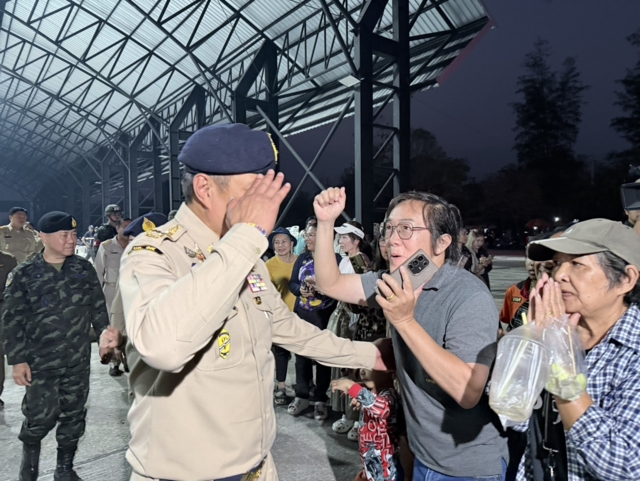 "ผมขอแสดงความชื่นชม และขอเรียกว่าเซอร์ ชรบ. เสียสละไม่ไปอยู่ศูนย์อพยพ เสียสละสิทธิ์ที่จะไม่ได้เงินเยียวยา ค่าตอบแทน ผมขอให้ปลัดกระทรวงมหาดไทยได้พิจารณาเรื่องนี้เป็นพิเศษ ไม่ว่าใครจะเป็นรัฐบาลกระทรวงมหาดไทยจะต้องนำเสนอเพื่อให้ชรบ. พวกเราไม่มีวันลืมท่าน ผมฟังแล้วรับไม่ได้เหมือนกัน เพราะท่านก็คือชาวบ้านคนหนึ่ง แต่ท่านทำหน้าที่มากกว่านั้นคือช่วยให้ชาวบ้านมาอยู่ที่ที่ปลอดภัยแล้วท่านยอมอยู่ในที่ที่อันตราย แต่ท่านไม่ได้สิทธิ์ของการเป็นผู้อพยพ อันนี้ไม่มีเหตุผล ผมจะดำเนินการเรื่องนี้อย่างเต็มที่ หวังว่าจะดำเนินไปสู่การปฎิบัติให้เร็วที่สุดเพื่อตอบแทนบุญคุณงามความดี ขอขอบพระคุณในนามของประชาชนคนไทยทุกคนที่ท่านทั้งหลายได้ปกป้องบ้านเมืองให้กับเรา รวมทั้งมีกำลังใจและอุดมการณ์ มีจิตอาสาที่จะช่วยปกป้องคุ้มครองดูแลพี่น้องประชาชนเพื่อร่วมชาติของเรา ให้มีความปลอดภัยสมดังเจตนารมณ์ที่ท่านเป็น ชรบ."นายกฯ กล่าว