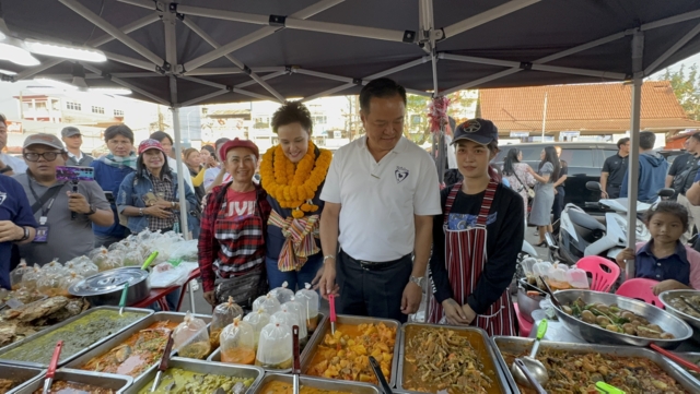 โดยนายอนุทินนั่งรถโตโยต้า เวลล์ไฟล์ สีขาว ทะเบียน บ-0691 กรุฃเทพมหานคร ทันทีที่มาถึง มีประชาชนทุกช่วงวัย รุมขอถ่ายภาพจำนวนมาก หลายคนต่างชื่นชมเรื่องการแก้ปัญหาชายแดนไทย-กัมพูชา และบอกว่าจะเลือกทั้งคน ทั้งพรรค นอกจากนี้ยังมีชาวบ้านนำ เคสโทรศัพท์ มาให้เซ็น ซึ่งนายอนุทิน ได้เขียนเบอร์ 37 พร้อมลงชื่อ “อนุทิน”