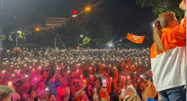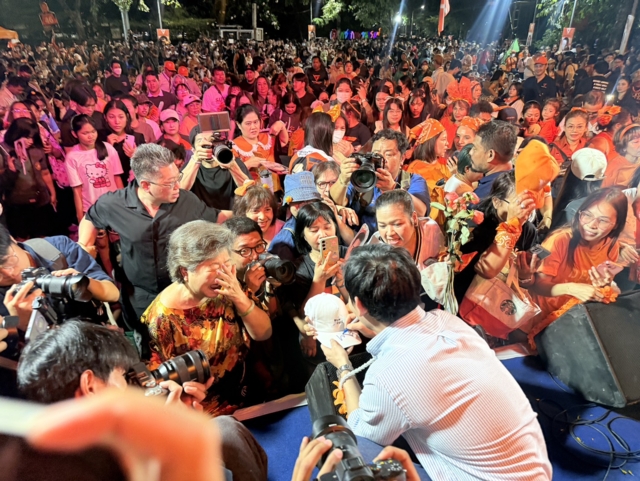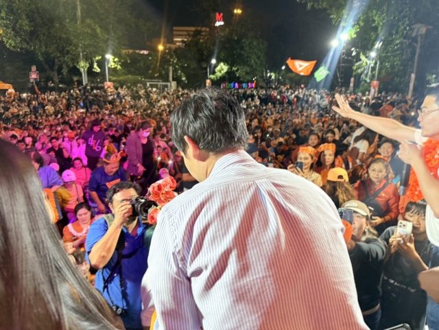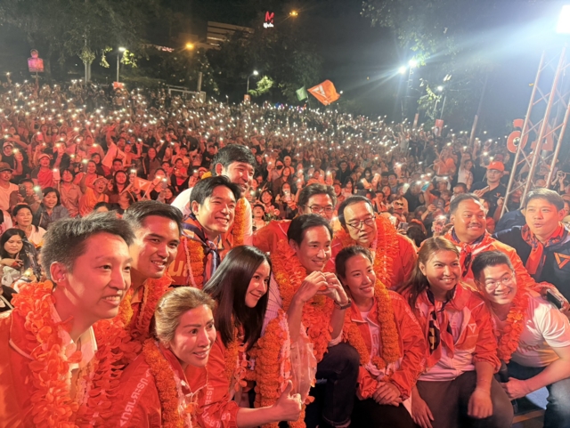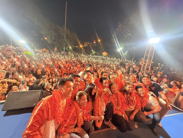 จากนั้นนายพิธาพร้อมผู้สมัคร ทั้ง 10 เขต ได้ร่วมถ่ายภาพกับประชาชนที่มารอฟังปราศรัย ทำทะเลดาว เหมือนกับทุกเวทีที่ผ่านมา