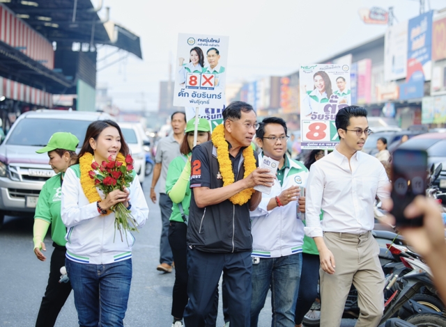 "เราเป็นคนรุ่นใหม่ เลือดนักสู้ กล้าคิด กล้าทำ กล้าชน ขอโอกาสส่ง ตั๊ก อัยรินทร์ เข้าสภาฯ เป็น ส.ส. ของคนบ้านเรา เพื่อขับเคลื่อนปทุมธานีให้มั่นคง" ร่วมกันเข้าคูหากาเบอร์ 8 เลือกคนทำงาน เลือกคนรุ่นใหม่ พัฒนาปทุมธานีไปด้วยกัน