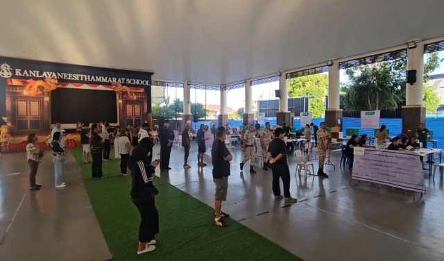 ที่อาคารเอนกประสงค์โรงเรียนกัลยาณีศรีธรรมราช อำเภอเมืองนครศรีธรรมราช หลังจากเปิดหีบเลือกตั้งล่วงหน้าในเวลา 08.00 น. มีประชาชนผู้มาแสดงตัวใช้สิทธิ์จำนวนมาก โดยเฉพาะกลุ่มผู้มาใช้สิทธินอกเขตเลือกตั้งเฉพาะในหน่วยนี้มากถึง4,504 รายและมีการเปิดหน่วยเลือกตั้งกระจายครบทั้ง 9 เขตของนครศรีธรรมราช มีผู้ลงทะเบียนรวม15,293ราย มีกลุ่มผู้มาใช้สิทธิหนาตาที่สุดอยู่ในกลุ่มจังหวัดภาคกลาง