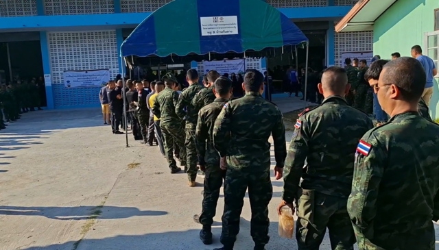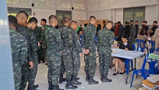 วันที่ 1 ก.พ.69 เวลา 08.00 น.ที่หอประชุม อ.กาบเชิง จ.สุรินทร์ ซึ่งเป็นสถานที่การจัดการเลือกตั้งล่วงหน้าของการเลือกตั้งสมาชิกสภาผู้แทนราษฎรเป็นการเลือกตั้งทั่วไปและการออกเสียงประชามติที่เลือกตั้งกลางนอกนอกเขตเลือกตั้งที่ 8 จ.สุรินทร์ โดยมีนายสุทธิโรจน์ เจริญธนะศักดิ์ นายอำเภอกาบเชิง เป็นประธานคณะกรรมการการเลือกตั้งประจำเขตเลือกตั้งที่ 8 จ.สุรินทร์ พบว่าหลังเปิดหีบเลือกตั้ งกำลังพลทหารจากหลายหน่วยที่มาประจำการปฏิบัติหน้าที่อยู่ที่แนวชายแดนไทย-กัมพูชา ในพื้นที่ จ.สุรินทร์ ที่ได้ลงทะเบียนไว้เดินทางมาเลือกตั้งล่วงหน้า และเข้าแถวต่อคิวเพื่อรอเข้าคูหาเลือกตั้งอย่างยาวเหยียด และคึกคักเป็นอย่างยิ่ง