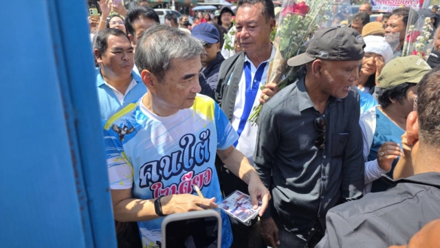 โดยนายอภิสิทธิ์กล่าวว่ามีคนเอารูปสมัยที่เคย เดินทางมาเมื่อ 10 กว่าปีก่อนมาให้ตนเซ็น แสดงให้เห็นถึงการต่อสู้เคียงข้างกับพรรคประชาธิปัตย์มาโดยตลอด ขอบคุณที่มีอุดมการณ์ทางการเมืองเดียวกัน ตลอด 30 กว่าปีที่ยืนหยัด ให้ประชาธิปัตย์สามารถที่จะมีที่ยืนในสภาฯ ในการเมือง เป็นรัฐบาลทำงานให้กับประชาชนทั่วประเทศ