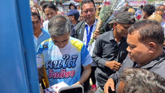 จากนั้นนายอภิสิทธิ์ได้ทักทายและขอบคุณคนใต้ ที่ร่วมต่อสู้กันมา และขอกลับไปเป็นนายกรัฐมนตรีอีกครั้ง 30 กว่าปีที่อยู่ในการเมืองเติบโตทางการเมืองใต้มีโอกาสไปทำงานเป็นนายกรัฐมนตรี ก็เพราะการสนับสนุนพี่น้องคนใต้ เราต่อสู้กันมา 30 ปี เราสู้กับเงินเราสู้กับอำนาจ เราต้องการให้การเมืองสุจริต วันนี้พี่น้องต้องออกแรงกันอีกรอบ กลับมาครั้งนี้ เรารวบรวมคนที่เป็นคนประชาธิปัตย์ สรรพกำลังช่วยกันทำงานให้พี่น้อง