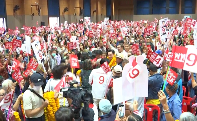 ด้านนายณัฐวุฒิ ปราศรัยว่า โค้งสุดท้ายบางพรรคการเมืองหน้ามืด บอกให้เลือกพรรคการเมืองที่รักชาติ แล้วคิดว่าตัวเองรักชาติอยู่พรรคเดียว คนอื่นไม่รักชาติ ไม่มีพรรคการเมืองไหนที่จะทำการเมืองแบบเกลียดชาติ เกลียดแผ่นดิน และพรรคเพื่อไทยไม่ได้เดินแนวทางที่จะสร้างความแตกแยก เราเดินหาเสียงทุกวันพูดถึงนโยบาย พูดที่จะแก้ปัญหา แคนดิเดตนายกรัฐมนตรีนายยศชนันไม่เคยกระทบกระทั่ง ไม่เคยขัดแย้ง ไม่เคยมีวิวาทะกับใคร ตั้งรัฐบาลปุ๊ปสามารถทำงานได้ทันที เพราะมีความรู้ ความสามารถ มีวิสัยทัศน์ พิสูจน์ตัวเองมาแล้ว เดินมาด้วยลำแข้งของตัวเอง พร้อมทันที ไม่เคยมีความขัดแย้งกับใคร ดังนั้นพรรคไหนที่บอกว่าชังชาติอย่าไปฟัง นั่นเป็นวิถีการเมืองที่ไม่ถูกต้อง และเมื่อเลือกไปแล้วก็จะกังวลว่าจะทำงานไม่ได้ ตั้งรัฐบาลไม่ได้ ซึ่งจะเป็นปัญหา ดังนั้นพรรคเพื่อไทยตั้งได้แน่ และนโยบายดี กล้าพูดได้เลยว่าหาเสียงรอบนี้พรรคที่พูดนโยบายมากที่สุด ชัดที่สุดคือพรรคเพื่อไทย