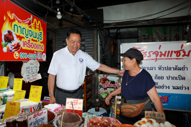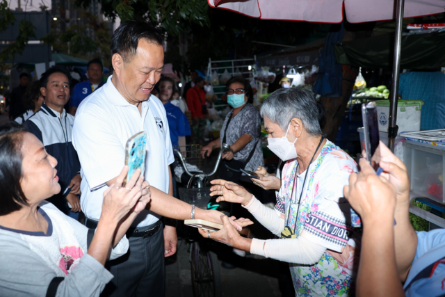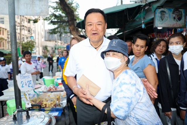 โดยนายอนุทิน เดินทักทายพ่อค้า แม่ค้าที่ขายของในตลาด และประชาชนที่มาจับจ่ายซื้อของในช่วงเช้า ซึ่งมีประชาชนดึงมือนายอนุทิน ไปดูลายมือ พร้อมถามว่า “อนาคตจะได้เป็นนายกฯไหม“