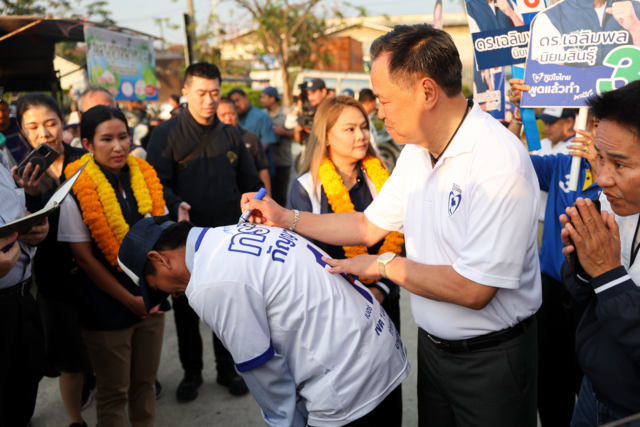 ท่ามกลางประชาชนมายืนถ่ายรูปอย่างสนุกสนาน ซึ่งมีประชาชนนำหมวกมาขอลายเซ็นนายอนุทิน นำสมุดมาให้เซ็นและหันหลังให้เซ็นลายเซ็นบนเสื้อ
