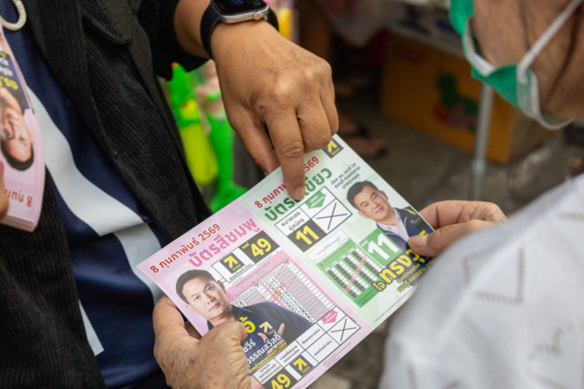 วันนี้ (3 กุมภาพันธ์ 2569) เวลา 07.00 น. ศาสตราจารย์ ดร.สุชัชวีร์ สุวรรณสวัสดิ์ หัวหน้าพรรคไทยก้าวใหม่ และแคนดิเดตนายกรัฐมนตรี พร้อม นายโชติพงศ์ สรรเสริญ ผู้สมัคร สส. กทม. เขต 6 หมายเลข 1 ลงพื้นที่หาเสียงตลาดห้วยขวาง และตลาดดินแดง บรรยากาศเป็นไปอย่างคึกคัก มีพ่อค้าแม่ค้าและประชาชนออกมาจับจ่ายใช้สอยในช่วงเช้าอย่างต่อเนื่อง ขณะเดียวกันมีประชาชนและแฟนคลับเข้ามาทักทาย พูดคุย และขอถ่ายภาพร่วมกับนายสุชัชวีร์อย่างเป็นกันเองตลอดเส้นทางการเดินหาเสียง