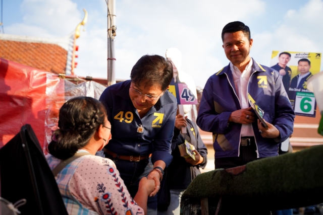 ดร.คุณหญิงกัลยา โสภณพนิช แคนดิเดตนายกรัฐมนตรีและประธานพรรคไทยก้าวใหม่ ลงพื้นที่ช่วยผู้สมัคร สส.กทม. เขต 18 และ ผู้สมัคร สส.กทม. เขต 20 ลงพื้นที่หาเสียงในเขตหนองจอกได้รับการต้อนรับอย่างอบอุ่น พร้อมสะท้อนว่าอยากให้พรรคไทยก้าวใหม่ แก้ปัญหาน้ำท่วมซ้ำซาก หวั่นน้ำจะท่วมกรุงเทพฯ ก่อนจะทิ้งท้ายว่าจะลงคะแนนให้พรรคไทยก้าวใหม่ทั้ง 2 ใบ เพราะชอบนโยบายด้านการศึกษาของพรรค และเชื่อมั่นว่าจะแก้ปัญหาน้ำท่วมซ้ำซากได้จริง