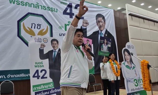 เมื่อเวลา 11.00 น.วันที่ 3 ก.พ.69 ที่บริเวณอาคารประชุมมหาวิทยาลัยมหาจุฬาลงกรณ์ราชวิทยาลัยสงฆ์นครลำปาง อ.เกาะคา จ.ลำปาง ร้อยเอกธรรมนัสพรหมเผ่า ประธานที่ปรึกษาพรรคและแคนดิเดตนายกรัฐมนตรีพรรคกล้าธรรม ลงพื้นที่ช่วยนางสาวเพ็ญภัค รัตนคำฟู ผู้สมัครสส.เขต4ลำปาง