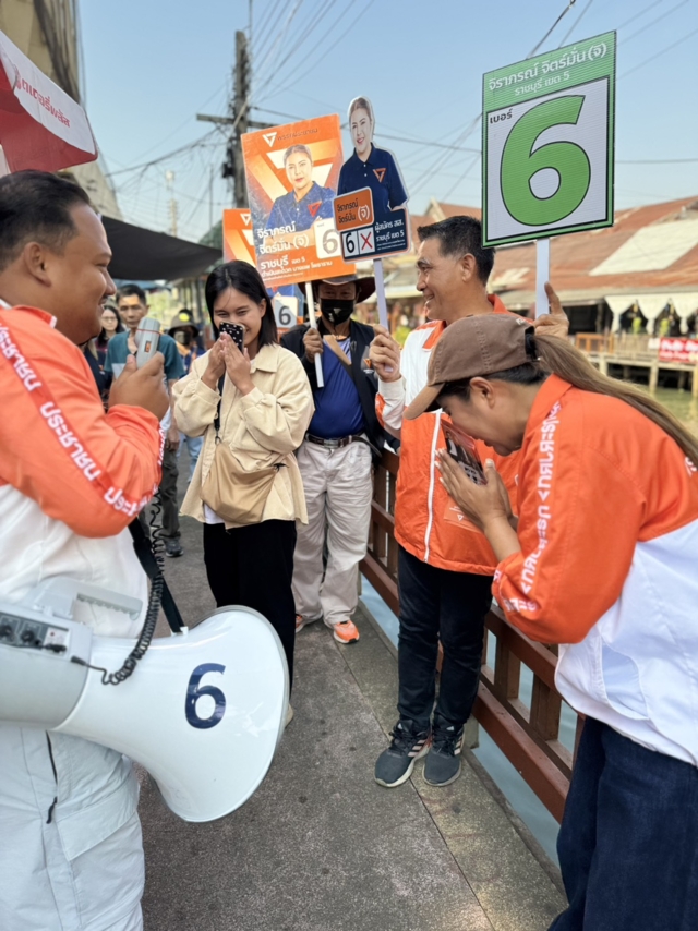 วันที่ 4 ก.พ. 69 น.ส.จิราภรณ์ จิตร์มั่น ผู้สมัคร สส.ราชบุรี พรรคประชาชน ลงพื้นที่หาเสียงบริเวณตลาดน้ำดำเนินสะดวก และ อ.บางเพ จ.ราชบุรี ร่วมกับนาย ณัฐชา บุญไชยอินสวัสดิ์ ผู้สมัคร สส.บัญชีรายชื่อ พรรคประชาชน ในช่วงโค้งสุดท้ายก่อนการเลือกตั้งจะมาถึงในวันที่ 8 ก.พ. นี้