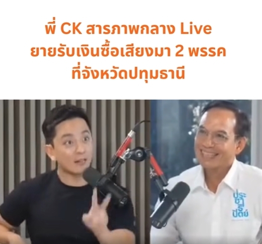 โดยในคลิป นายซีเค กล่าวว่า ที่ จ.ปทุมธานี ก็มีซื้อเหมือนกัน ยายของตนโดนมาแล้ว เพิ่งโดนไป โทรมาหาตน บอกว่าได้ทั้ง 2 พรรค แต่ไม่กาสักพรรค