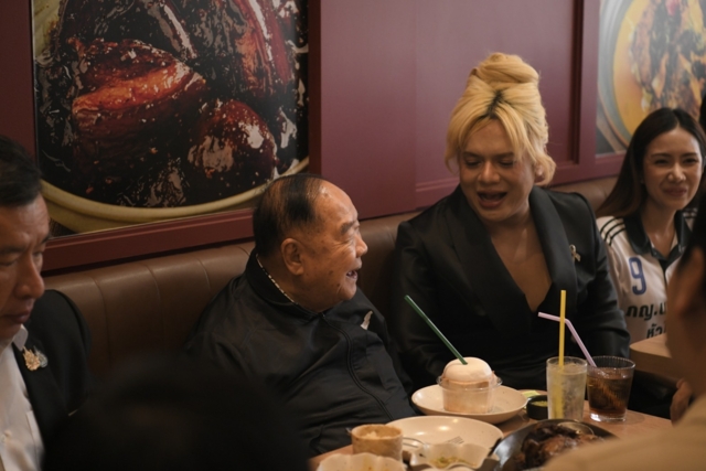 โดยมี "เอ ศุภชัย ศรีวิจิตร" ผู้จัดการดาราชื่อดัง ในฐานะเจ้าของร้าน ให้การต้อนรับอย่างใกล้ชิด จัดเตรียมเมนูอาหารหลากหลายมาให้ลุงป้อมชิม โดยลุงป้อมชิมทุกเมนู และเอ่ยปากชมในรสชาติ ระหว่างรับประทานอาหาร "เอ ศุภชัย" หยิบโทรศัพท์มือถือขึ้นมาชวนลุงป้อมถ่ายคลิป "ขายาว" พร้อมโชว์ผลงานคลิปวิดีโอ ทำให้ลุงป้อมหัวเราะอย่างอารมณ์ดี พร้อมกล่าวติดตลกว่า "ไม่รอดจริงๆ"