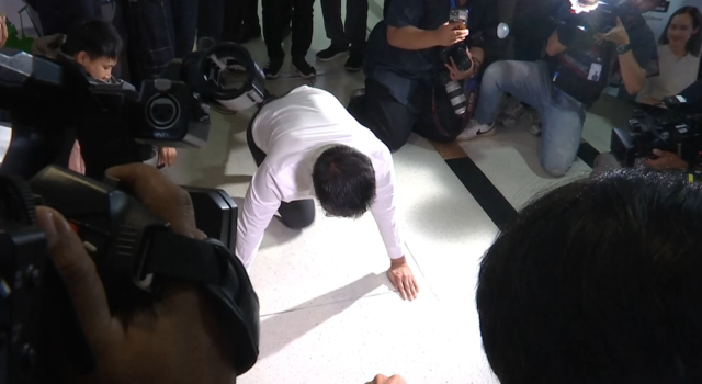 จากนั้น นายมงคลกิตติ์ ได้ไปวิดพื้นโชว์สื่อมวลชนอยู่ด้านหน้าทางเข้าสำนักงาน กกต. โดยมีการพูดว่าเป็นการวิดพื้นเพื่อรอนายแสวง พร้อมเรียกหานายแสวงระหว่างวิดพื้น ก่อนจะเข้าไปพบกับเจ้าหน้าที่ กกต. เพื่อชี้แจงนโยบายพรรค โดยครั้งแรกวิดพื้นทั้งหมด 30 ครั้ง