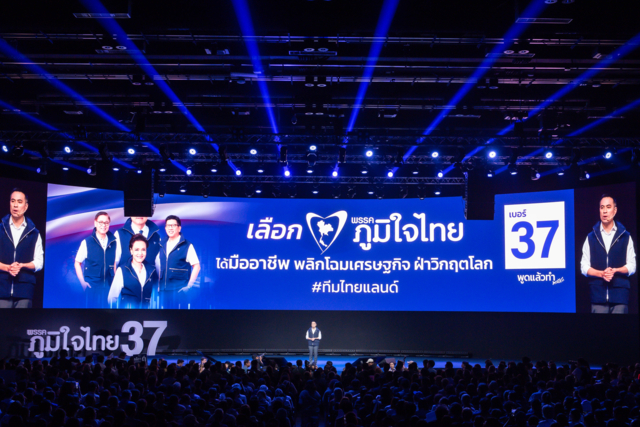 พรรคภูมิใจไทย จัดปราศรัยใหญ่ครั้งสุดท้าย ก่อนการเลือกตั้ง ที่ ศูนย์การประชุมแห่งชาติสิริกิติ์ นำเสนอสโลแกน “เลือกพรรคภูมิใจไทย ได้มืออาชีพ พลิกโฉมเศรษฐกิจ ฝ่าวิกฤตโลก” ซึ่งกำหนดการบนเวที จะเริ่ม ตั้งแต่เวลา 16.30 น. เป็นต้นไป