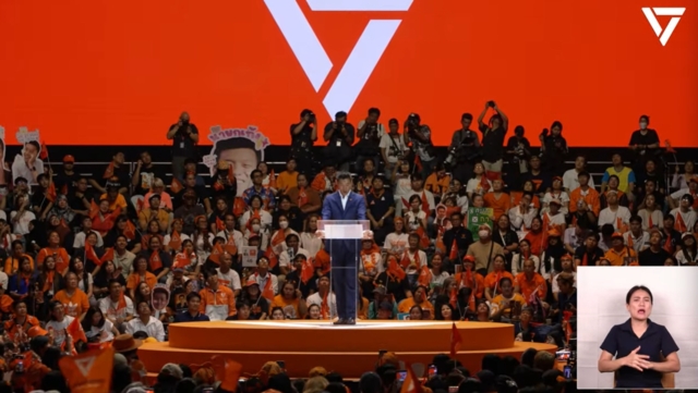 ที่อาคารกีฬาเวสน์ 1 ศูนย์เยาวชนกรุงเทพมหานครไทยญี่ปุ่น (ดินแดง) ในเวทีปราศรัย “ประชาชนเปลี่ยนประเทศ” นายธนาธร จึงรุ่งเรืองกิจ ผู้ช่วยหาเสียงพรรคประชาชน เริ่มกล่าวด้วยการขอบคุณประชาชนที่มาฟังปราศรัย พร้อมกล่าวว่า ตั้งแต่วันที่ประกาศตั้งพรรคอนาคตใหม่เมื่อเดือนมีนาคมปี พ.ศ. 2561 มาจนถึงวันนี้นับเป็นเวลา 8 ปีเต็ม ตอนที่เราตั้งพรรคอนาคตใหม่สังคมไทยอยู่ในความมืดมิดสิทธิเสรีภาพของประชาชนถูกริดรอน ผู้คนรังเกียจนักการเมือง ผู้คนไม่เชื่อมั่นในรัฐสภาผู้คนตั้งคำถามกับประชาธิปไตย