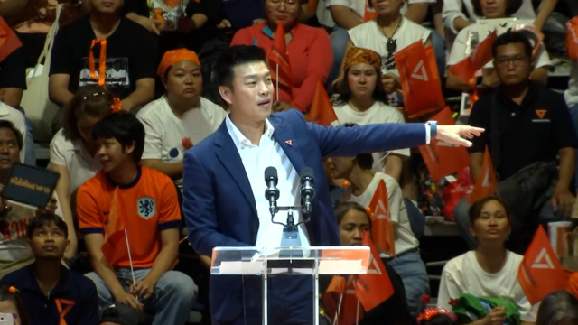 และนอกจากนี้ประชาชนต้องช่วยกันสถาปนาการเมืองของประชาชนให้เป็นจริงมากยิ่งขึ้น อีกด้านหนึ่งช่วยกันทลายการเมืองที่ผูกขาด ที่ผุพังลงทุกวัน จะเห็นได้ว่าที่ผ่านมาพรรคเรามีคนธรรมดามาทำงานการเมือง คนธรรมดาหลายคนที่ไม่ได้มีทุนใหญ่โต ห่างไกลจากคำนิยามว่า นักการเมืองรุ่นใหญ่ ห่างไกลจากคำว่า คนที่เป็นเจ้าของเงินทุน เพื่อมายึดมือถือครองพรรคการเมือง ไม่ว่าจะเป็นอดีตนักกิจกรรมที่เคยติดคุก ที่วันนี้พวกเขาได้เติบโตมาพูดถึงในเรื่องของสแกมเมอร์ ซึ่งใหญ่ไปถึงระดับโลก และเป็นประเด็นที่เราจะต้องผลักดันร่วมกันและยังมีนายช่าง วิศวกร ที่เคยเป็นถึงอดีตแคนดิเดตผู้ว่าแต่วันนี้ยอมถอดหมวกทุกใบ เพื่อเปิดทาง เปิดเก้าอี้ให้คนอื่นไปทำหน้าที่ในสภาไม่ได้มีเพียงแค่คนจากยุคอนาคตใหม่ ในสมัยก้าวไกลยังมีหญิงเก่งหญิงกล้าจากคนธรรมดาที่ทำงานด้านการเมือง ยกตัวอย่าง เช่น คนแรกกำลังมีคดี เป็นปากเป็นเสียงเรียกร้องในเรื่องประกันสังคม วันนี้หาเสียงหลายวันที่ผ่านมา เรียกได้ว่า หาเสียงเหมือนวันสุดท้ายของชีวิตทางการเมืองของเขา และหญิงเก่งอีกหญิงแกรอีกหนึ่งคน ที่อาจจะไม่ได้ติดคดี แต่ติดอยู่ในพื้นที่ภาคใต้ หญิงเก่งหญิงกล้าคนนี้อยู่ร่วมทุกข์ร่มสุขกับประชาชนคนภาคใต้ในจังหวัดสงขลาและอีกหลายจังหวัด ในช่วงที่พวกเขามีความเดือดร้อนมากที่สุด ในวิกฤติมหาอุทกภัยหาดใหญ่ที่ผ่านมาจนวันนี้เป็นที่รักของประชาชนทั่วทั้งประเทศ ตนขอชื่นชมในการทํางาน ไม่เพียงทั้ง 4 คน กับการเดินทางที่ผ่านมา มีสมาชิกพรรคอีกมากที่ร่วมเดินทางมา และยังมีเจ้าหน้าที่พรรค ผู้สมัครของพรรคที่ลงการเมือง ทั้งในระดับท้องถิ่นและระดับประเทศ และในวันนี้ยังมีสมาชิกพรรคหัวคะแนนธรรมชาติ หลักแสนคนและหลักล้านคน