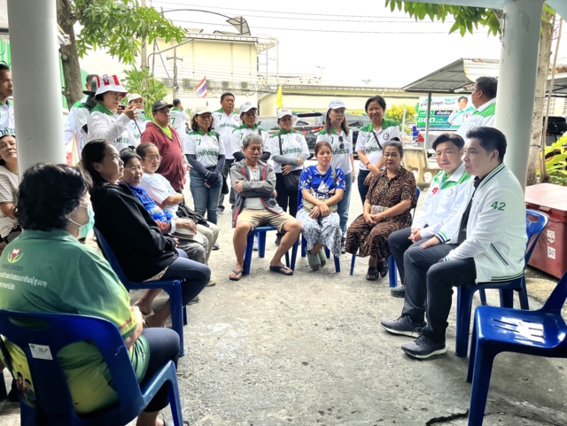 โดยตัวแทนชาวชุมชน กล่าวว่า รู้สึกดีใจ ที่ได้มาพบ ได้มานั่งพูดคุยแบบล้อมวงเป็นกันเอง ไม่คิดว่าจะมา แบบตัวจริง เสียงจริง ทำให้ปลื้มใจเป็นอย่างมาก และพร้อมจะช่วยเลือกท่านและผู้สมัคร สส.ในพื้นที่ได้เข้ามาช่วยแก้ปัญหา และสิ่งที่ต้องการหลักๆ คือ ให้ช่วยแก้ปัญหาเศษฐกิจฐานรากให้พ่อค้าแม่ค้าได้ค้าขายคล่องตัวขึ้น ขอให้กล้าทำอย่างที่พูด ส่วนใครจะบอกว่าพรรคนี้สีเทา พวกเขาไม่ได้สนใจ เพราะเห็นว่าพรรคนี้ทำจริง และเห็นสิ่งที่นายกองตรี ธนกฤต ทำนั้น ทำดีและทำจริงมาตลอด ซึ่งปัญหาของชาวบ้านที่เห็นได้ชัดคือปัญหาเรื่องปากท้อง, ความไม่เท่าเทียมในสังคม, การศึกษาของเด็กๆ