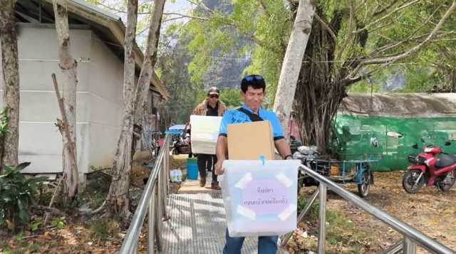 วันที่ 7 ก.พ. 69 ผู้สื่อข่าวรายงานว่า ที่บริเวณชั้น2 ที่ว่าการอำเภอเมืองพังงา บรรยากาศเป็นไปอย่างคึกคัก เจ้าหน้าที่ประจำหน่วยเลือกตั้ง (กปน.) ในพื้นที่เกาะในอ่าวพังงา และในทุกตำบลของอำเภอเมืองพังงา ได้เดินทางมารับหีบบัตรเลือกตั้ง และหีบบัตรลงประชามติ พร้อมอุปกรณ์ไปยังหน่วยเลือกตั้งในหน่วยพื้นที่เกาะนั้นได้ลำเลียงลงเรือ เพื่อนำไปยังหน่วยเลือกตั้ง ในพื้นที่เกาะปันหยี เกาะไม้ไผ่ และเกาะหมากน้อย ซึ่งอยู่ในพื้นที่ต.เกาะปันหยี อ.เมืองพังงา