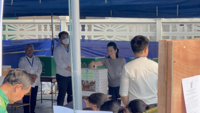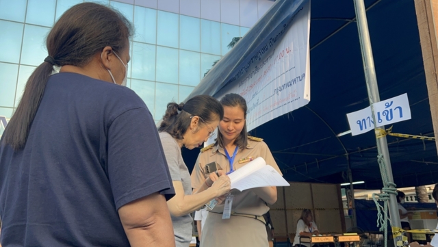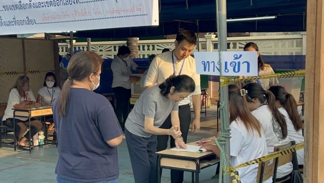 โดยเจ้าหน้าที่ประจำหน่วยได้ขอความร่งมมือให้นางเยาวภา และประชาชนอีกท่าน ได้เซ็นลายมือชื่อเพื่อเป็นพยานในการตรวจสอบหีบเลือกตั้ง ก่อนการเปิดหีบ