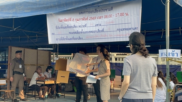 วันที่ 8 ก.พ. 69 บรรยากาศที่เขตเลือกตั้งที่ 8 หน่วยที่ 54 แขวงทุ่งสองห้อง เขตหลักสี่ เต็นท์ที่จอดรถบริษัท ยูซีไอ มีเดียจำกัด หน้าหมู่บ้านเบเวอรี่ฮิลล์ แขวงทุ่งสองห้อง กทม. ตั้งแต่ช่วงเช้าที่ผ่านมา มีคณะกรรมการประจำหน่วยเลือกตั้ง (กปน.) ได้เข้ามาจัดเตรียมสถานที่ตั้งแต่เช้ามืดที่ผ่านมา ทั้งการติดตั้งบอร์ดรายชื่อผู้สมัคร และรายชื่อผู้มีสิทธิเลือกตั้ง รวมถึงจัดเตรียมคูหาสำหรับลงคะแนนเลือกตั้ง สส.แบ่งเขต สส.บัญชีรายชื่อ และออกเสียงประชามติ