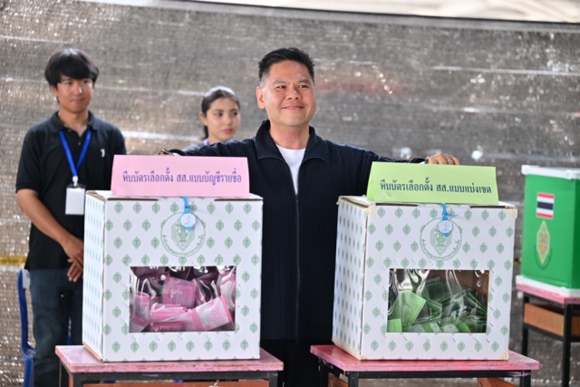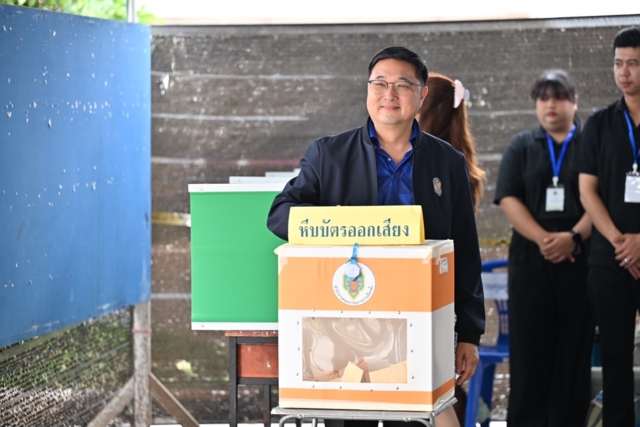 วันที่ 8 ก.พ. 69 ที่ จ.สุพรรณบุรี นาย วราวุธ ศิลปอาชา ผู้สมัคร สส. พรรคภูมิใจไทย นาย สรชัด สุจิตต์ ผู้สมัคร สส.สุพรรณบุรี พรรคภูมิใจไทย เดินทางมาใช้สิทธิเลือกตั้งพร้อมกันที่เขตเลือกตั้งที่ 1 หน่วยเลือกตั้งที่ 27 ณ เต็นท์บริเวณที่จอดรถ ห้างฯ Big C อ.เมือง จ.สุพรรณบุรี