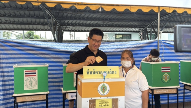 เวลา 10.00น. ที่ชุมนุมสหกรณ์การเกษตรแห่งประเทศไทย หน่วยเลือกตั้งที่ 8 แขวงลาดยาว เขตจตุจักร นายเอกนิติ นิติทัณฑ์ประภาศ เดินทางมาใช้สิทธิ์เลือกตั้งและออกเสียงประชามติ โดยมีรายชื่ออยู่ในลำดับที่ 80