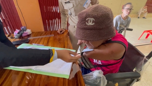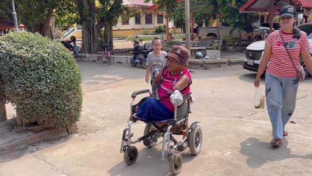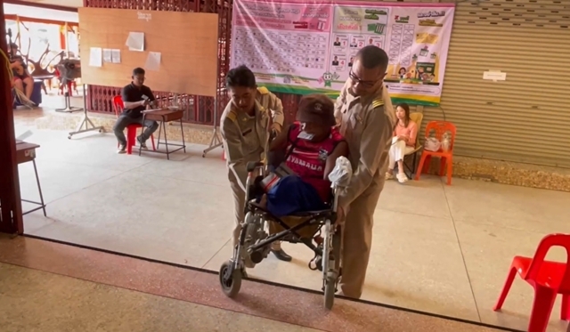 โดยมีเจ้าหน้าที่ประจำหน่วย และประชาชนช่วยกันยกวีลแชร์ขึ้นสู่ศาลาการเปรียญที่มีพื้นต่างระดับ เพื่ออำนวยความสะดวกให้นายเสริมได้เข้าสู่กระบวนการลงคะแนนตามความตั้งใจ