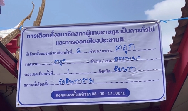 วันที่ 8 ก.พ. 69 บรรยากาศการเลือกตั้ง สส. และการออกเสียงประชามติ ณ ศาลาการเปรียญวัดอินทาราม หรือ วัดตลุกหมู่ที่ 2 ต.ตลุก อ.สรรพยา จ.ชัยนาท ซึ่งเป็นหน่วยเลือกตั้งที่2 ของตำบล ได้เกิดภาพสุดประทับใจเมื่อนาย บุญเสริม สีสุข หรือ เสริม อายุ 59 ปี ชายผู้พิการทางการเคลื่อนไหว ไร้แขนและขาได้นั่งวีลแชร์ไฟฟ้าเดินทางมาใช้สิทธิเลือกตั้งด้วยความมุ่งมั่น