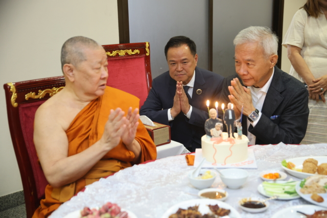 ในพิธีได้มีการนิมนต์ สมเด็จพระพุฒาจารย์ (สนิท ชวนปัญโญ) เจ้าอาวาสวัดไตรมิตรวิทยาราม เจ้าคณะใหญ่หนตะวันออก และกรรมการมหาเถรสมาคม พร้อมด้วย สมเด็จพระมหารัชมงคลมุนี (ธงชัย ธมฺมธโช) ผู้ช่วยเจ้าอาวาสวัดไตรมิตรวิทยารามวรวิหาร เจ้าคณะใหญ่หนกลาง และกรรมการมหาเถรสมาคม โดยมีการทำบุญเลี้ยงพระเพลพระสงฆ์ของวัดไตรมิตรฯ รวม 40 รูป