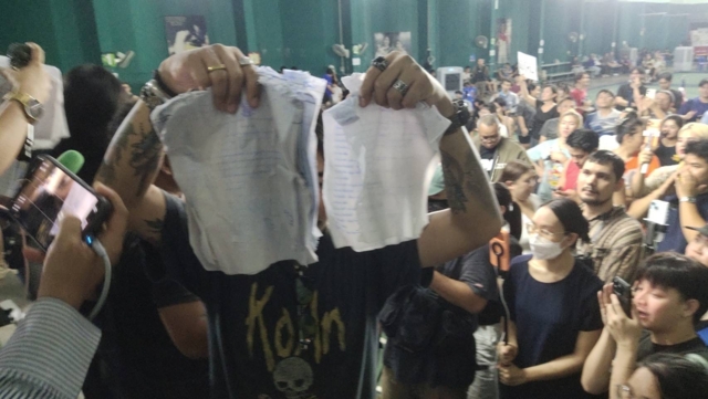 จากนั้นมีประชาชนเข้ามาสอบถามแบบประชิดตัวว่ายื่นเรื่องไปแล้ว กระบวนการต่อไปคืออะไร ร.ต.อ.ชนินทร์ กล่าวว่า จะประชุมในเวลา 10.00 น. และวันศุกร์จะมีมติ ทำให้ประชาชนโห่กันอีกครั้ง พร้อมกับเรียกร้องให้ กกต.กลาง ยกคณะมาประชุมกันที่นี่เดี๋ยวนี้เลยทันที พร้อมกับพากันส่งเสียงร้องว่า “นับใหม่ๆๆ ขี้โกงๆๆ” และจี้ให้ ร.ต.อ.ชนินทร์ ให้คำตอบว่า การที่หีบบัตรไม่มีเคเบิ้ลไทร์มัด ผิดกฎหมายหรือไม่ ถ้าผิด ก็ต้องนับคะแนนใหม่