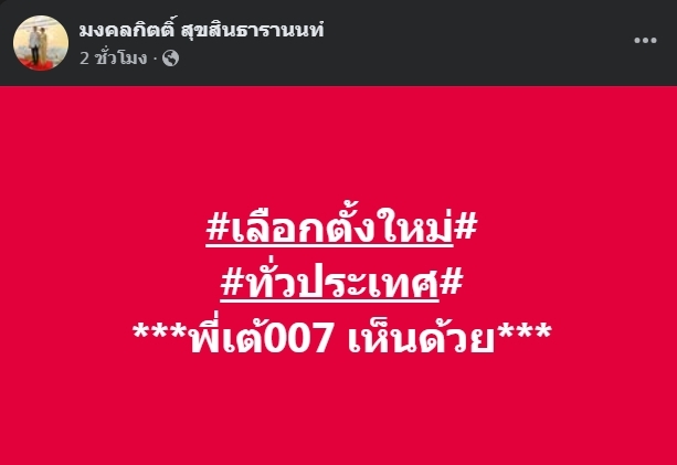 ก่อนจะโพสต์อีกรอบว่า #เลือกตั้งใหม่ #ทั่วประเทศ# ***พี่เต้007 เห็นด้วย***