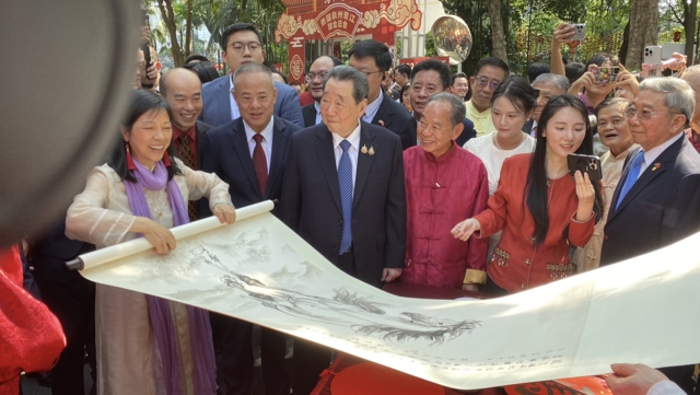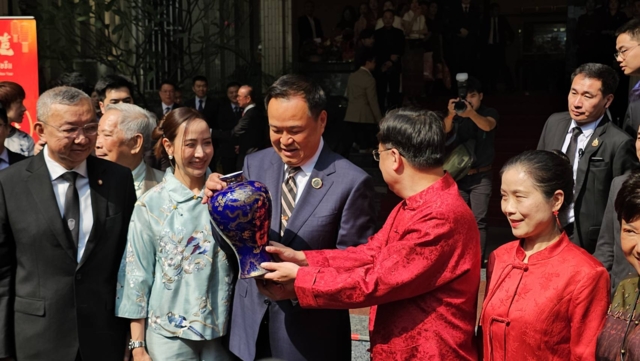 ทั้งนี้ เมื่อเดินทางมาถึง นายกรัฐมนตรี ได้รับมอบแจกันสีน้ำเงินลายมังกรทอง จากเอกอัครราชทูตจีนฯ และมอบช่อดอกไม้สีแดง เพื่อแสดงความยินดีให้แก่เอกอัครราชทูตจีนฯกลับ จากนั้นได้ถ่ายรูปหมู่ร่วมกัน พร้อมรับชมการแสดงชุดอิงเกอและการเชิดสิงโต
