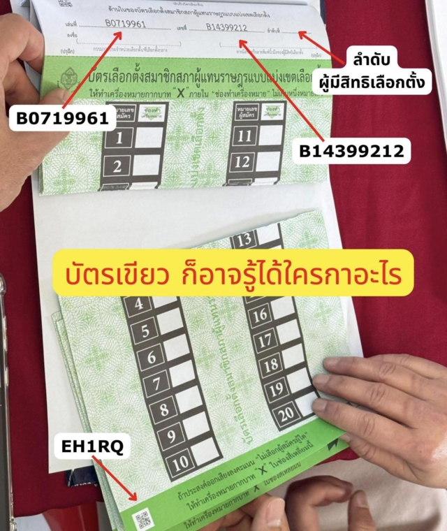 เรื่องที่เป็นเรื่องใหญ่ ที่ กกต. ต้องพิสูจน์ให้ชัดแจ้งต่อสาธารณะชน ว่า Barcode และ QR Code ที่ติดไว้บนบัตรเลือกตั้ง มีลักษณะ เฉพาะของมันเองหรือไม่ (Unique Running Number) ซึ่งถ้าเป็นเช่นนั้นจริง #กกตต้องติดคุก
