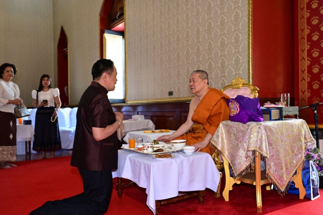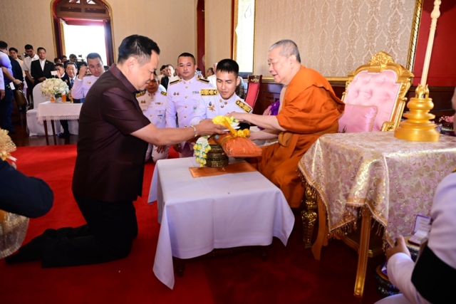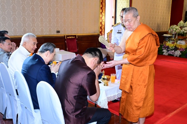 ในการนี้ นายอนุทิน ชาญวีรกูล นายกรัฐมนตรีและรัฐมนตรีว่าการกระทรวงมหาดไทย กราบถวายสักการะ สมเด็จพระพุฒาจารย์ และสมเด็จพระมหารัชมงคลมุนี โดยถวายพานดอกไม้ ธูปเทียนแพ ผ้าไตร เครื่องไทยธรรม และแจกันดอกไม้ จากนั้น สมเด็จพระพุฒาจารย์ จุดธูปเทียนบูชาพระรัตนตรัย นายกรัฐมนตรีจุดธูปเทียนเครื่องทองน้อยเบื้องหน้าพระฉายาลักษณ์สมเด็จพระนางเจ้าสิริกิติ์ พระบรมราชินีนาถ พระบรมราชชนนีพันปีหลวง และประกอบพิธีเจริญพระพุทธมนต์ทำบุญอายุวัฒนมงคลฯ