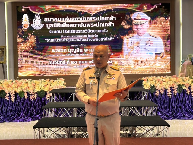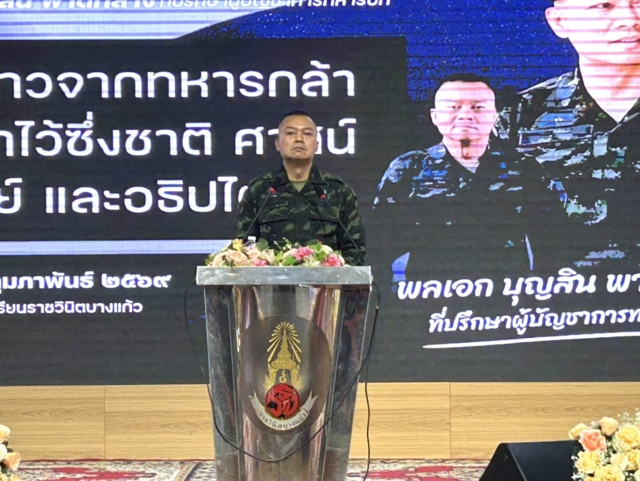 วันที่ 23 ก.พ. 69 ที่โรงเรียนราชวินิตบางแก้วในพระบรมราชูปภัมถ์ พล.อ.บุญสิน พาดกลาง ที่ปรึกษาผู้บัญชาการทหารบก และอดีตแม่ทัพภาคที่2 บรรยายพิเศษหัวข้อ การสร้างจิตสํานึก รักชาติศาสนา พระมหากษัตริย์ และการรักษาไว้ซึ่งอธิปไตย โดยมี นายศุภากร เมฆขยาย ผอ.โรงเรียนฯ ให้การต้อนรับ พร้อมด้วย น.ส.บุษรา พาคํา รองผู้อํานวยการฯ นางพัชรีพร ชูชาติ รองผู้อํานวยการฯ นางนงค์นุช ภูมี รองผู้อํานวยการฯ นายธพลศจกรณ์ พิมพิชัยธกุล รองผู้อํานวยการฯ
