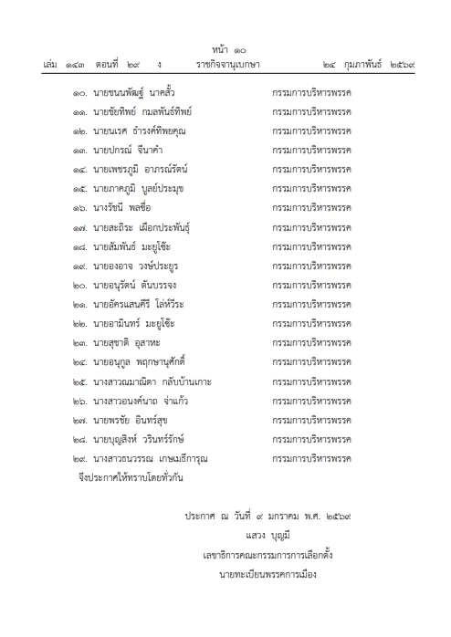 เมื่อวันที่ 24 กุมภาพันธ์ เว็บไซต์ราชกิจจานุเบกษา เผยแพร่ประกาศ เรื่อง การเปลี่ยนแปลงกรรมการบริหารพรรคกล้าธรรม