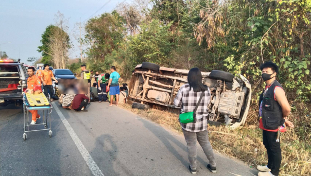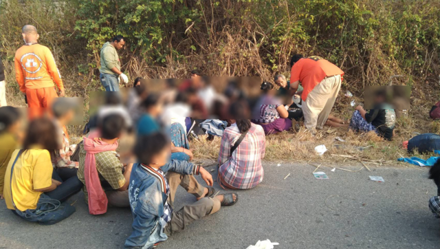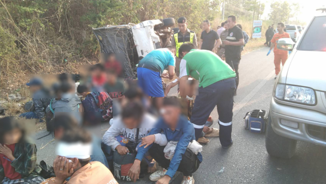 เมื่อมาถึงบริเวณท้องที่บ้านหนองสามพราน หมู่ 9 ต.วังด้ง อ.เมือง จ.กาญจนบุรี รถคันดังกล่าวได้เกิดอุบัติเหตุเสียหลักพลิกคว่ำ ทำให้แรงงานต่างด้าวทั้งชายหญิงได้รับบาดเจ็บเป็นจำนวนมาก ขณะนี้กำลังเจ้าหน้าที่มูลนิธิพิทักษ์กาญจน์ กำลังเดินทางไปให้ความช่วยเหลือผู้ได้รับบาดเจ็บส่งไปรักษาที่โรงพยาบาลพหลพลพยุหเสนา