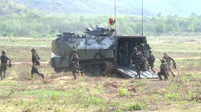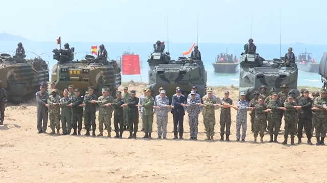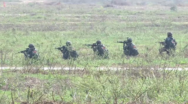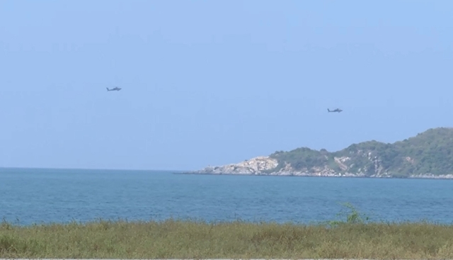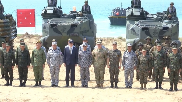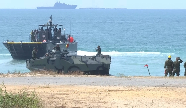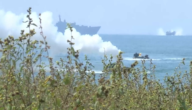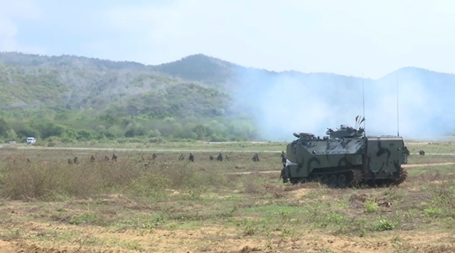 โดยการฝึกยกพลขึ้นบกภายใต้สถานการณ์จำลองในวันนี้ เริ่มต้นขึ้นตั้งแต่เวลา 10.00–11.00 น. โดยเวลา 10.15 น. มีการจำลองการยิงระเบิดเปิดพื้นที่ ก่อนที่เวลา 10.21 น. เฮลิคอปเตอร์โจมตี AH-64 อาปาเช่ ของสหรัฐอเมริกา จะทำการจำลองทิ้งระเบิดสนับสนุนทางอากาศ