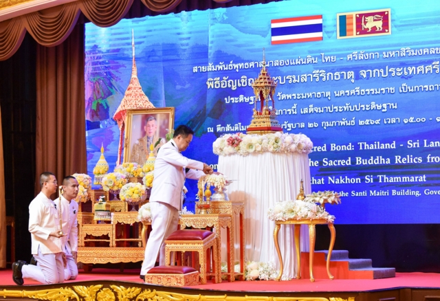 โดยพระบรมสารีริกธาตุได้ประดิษฐานเป็นการชั่วคราว ณ ทำเนียบรัฐบาล จนถึงเวลา 17.00 น. ก่อนที่จะถูกอัญเชิญไปยังวัดพระเชตุพนฯ และในวันศุกร์ที่ 28 กุมภาพันธ์ 2569 พระบรมสารีริกธาตุจะถูกอัญเชิญไปประดิษฐานเป็นการถาวร ณ วัดพระมหาธาตุวรมหาวิหาร จังหวัดนครศรีธรรมราช เพื่อเฉลิมฉลองวาระครบรอบ 1,250 ปี พระบรมธาตุนครศรีธรรมราช และวันมาฆบูชา พร้อมมีการจัดงานมหากุศลครั้งยิ่งใหญ่ระหว่างวันที่ 27 กุมภาพันธ์ – 1 มีนาคม 2569 ซึ่งจะมีพิธีถวายภัตตาหารแด่พระสงฆ์ 11,250 รูป และขบวนแห่ผ้าพระบรมธาตุอันศักดิ์สิทธิ์