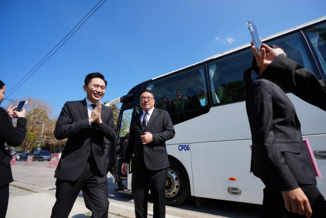 นายยศชนัน วงศ์สวัสดิ์ แคนดิเดตนายกรัฐมนตรี และว่าที่ สส. บัญชีรายชื่อ , นายจุลพันธ์ อมรวิวัฒน์ หัวหน้าพรรคเพื่อไทย และว่าที่ สส. บัญชีรายชื่อ , นายสุริยะ จึงรุ่งเรืองกิจ ว่าที่ สส. บัญชีรายชื่อรายชื่อ , นายประเสริฐ จันทรรวงทอง เลขาธิการพรรคเพื่อไทย และว่าที่ สส. บัญชีรายชื่อ นำคณะ สส. แบบแบ่งเขตของพรรคเพื่อไทยขึ้นรถบัส EV จากที่ทำการพรรคเพื่อไทย เข้ารายงานตัวสมาชิกสภาผู้แทนราษฎร ชุดที่ 27 ต่อสำนักงานเลขาธิการสภาผู้แทนราษฎร ที่อาคารรัฐสภา